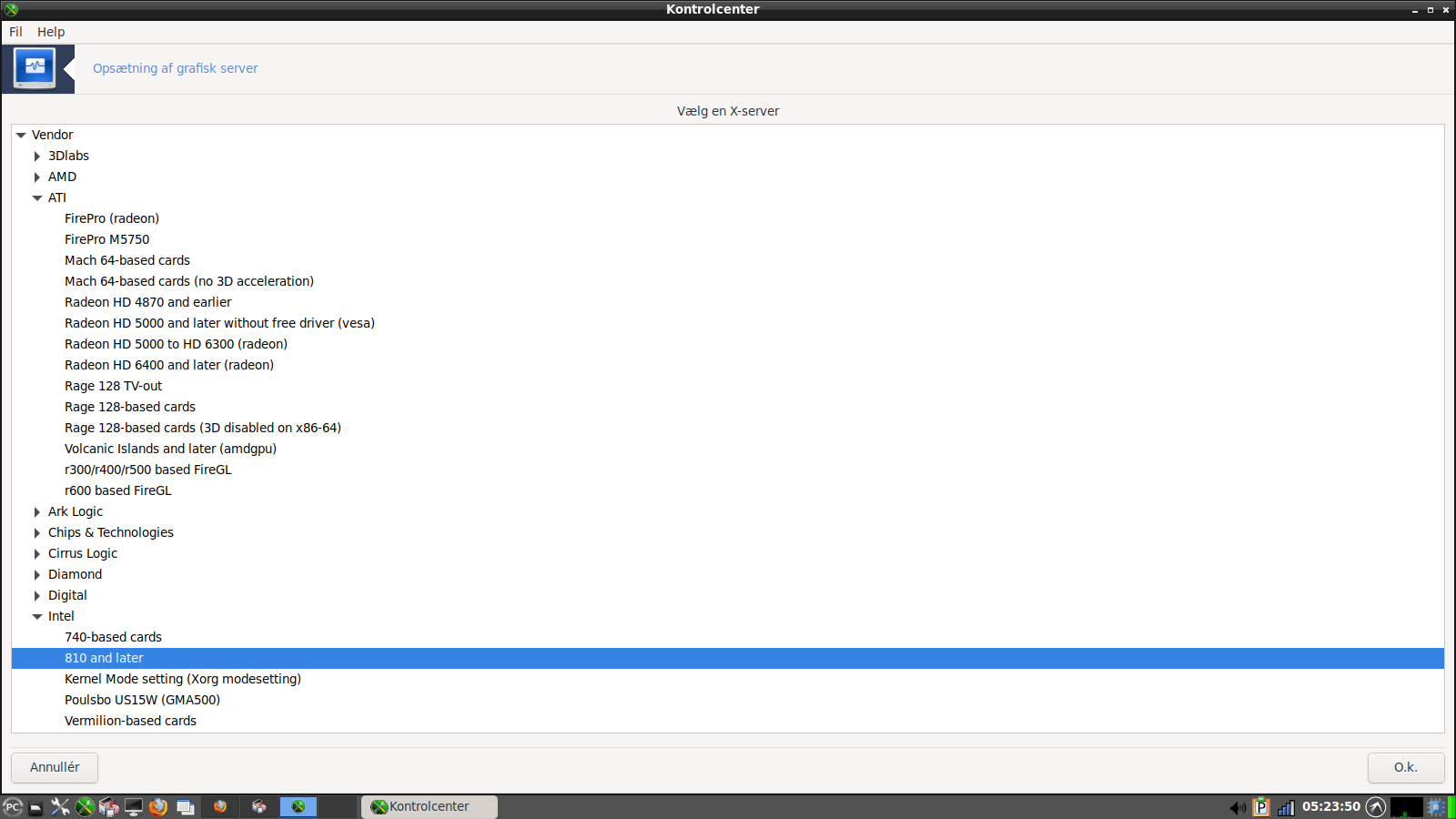 Jeg har snakket med Tonny, og problemet er at det Radeon grafikkort der sidder i maskinen IKKE er kompatible med Linux som udgangspunkt.