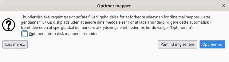 Jeg er ved at importere mails fra min forrige computer og nu dukker denne meddelelse op i Thunderbird. Jeg har siddet og læst lidt om men kan ikke se om det ændrer noget på mine mails. De skriver at de komprimeres, men vil det have indflydelse på mail og indhold ? Nogen her der kender til det ?